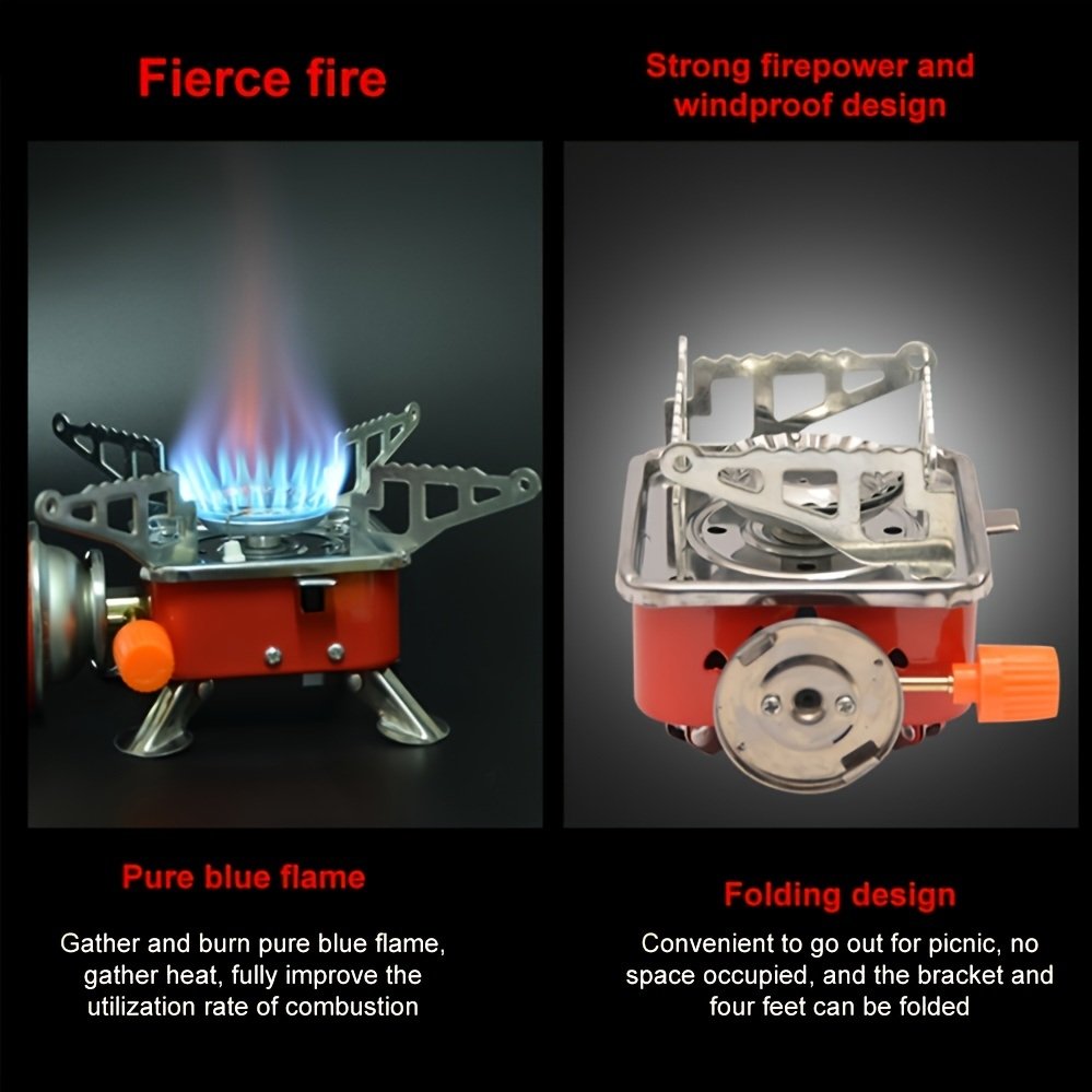Home > 1pc Mini Windproof Foldable Square Gas Stove For Outdoor Camping; Hiking Accessory