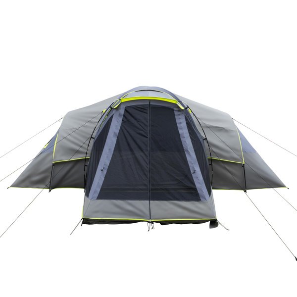 522*260*210cm Can Accommodate 10 People Three Rooms Polyester Cloth Fiberglass Poles Camping Tents Family Tents Dark Gray